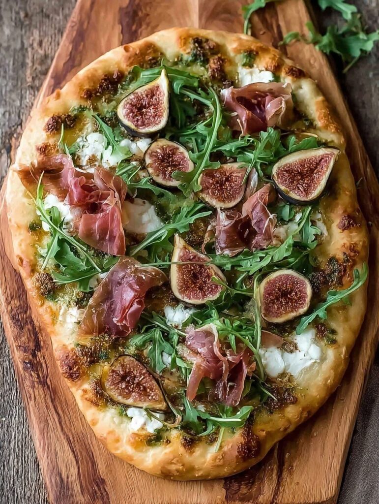 This gourmet flatbread is perfect for entertaining! Sweet figs, salty prosciutto, peppery arugula, and creamy goat cheese create an elegant flavor profile.