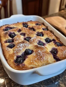 Finally, place the baking dish in the preheated oven. Bake for about 30-35 minutes, or until the top is golden brown and a toothpick inserted in the center comes out clean. The aroma of the baking blueberries will fill your kitchen, making it hard to wait!