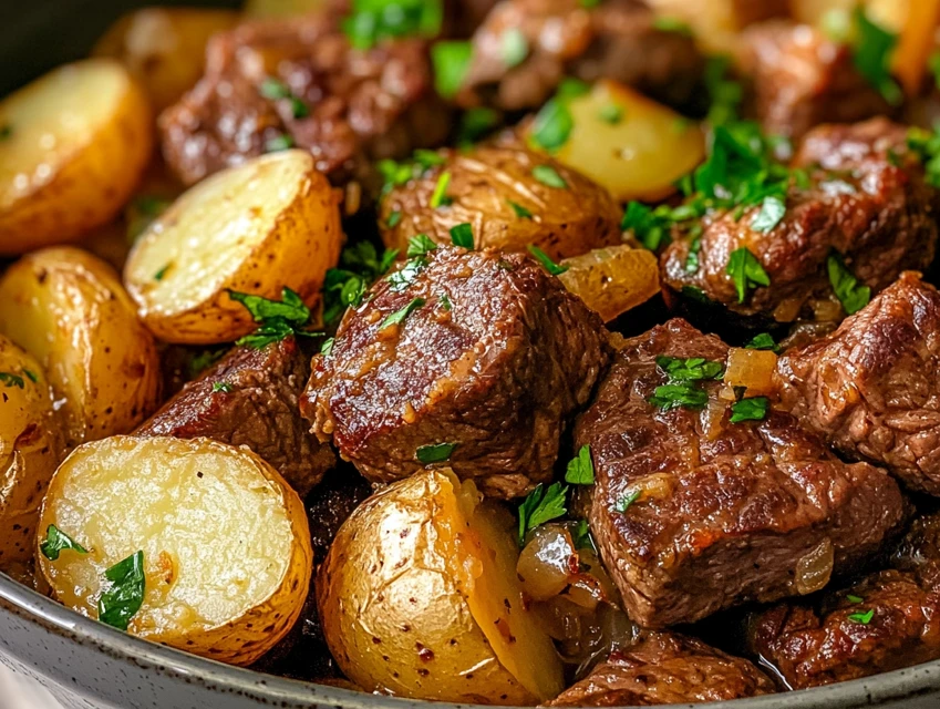 Moreover, the nutritional benefits of Garlic Butter Beef Bites and Potatoes make it a satisfying choice. With a good balance of protein, carbohydrates, and essential nutrients, it’s a meal that nourishes both body and soul. Plus, the leftovers are just as delicious, making it a great option for meal prep.
