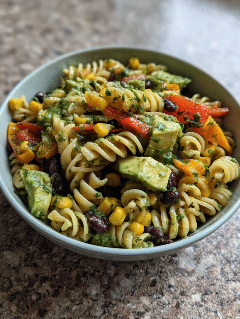 Bold, zesty, and colorful! This Tex-Mex inspired pasta salad with corn, black beans, and avocado is always a crowd favorite at summer cookouts.
